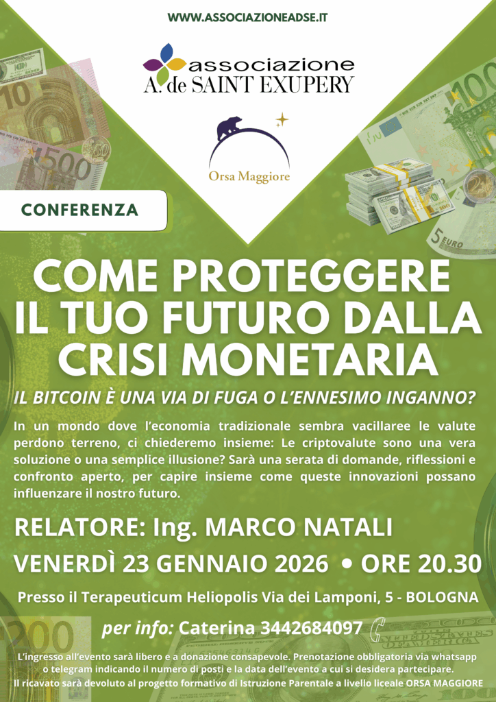 In un mondo dove l’economia tradizionale sembra vacillaree le valute perdono terreno, ci chiederemo insieme: Le criptovalute sono una vera soluzione o una semplice illusione? Sarà una serata di domande, riflessioni e confronto aperto, per capire insieme come queste innovazioni possano influenzare il nostro futuro.